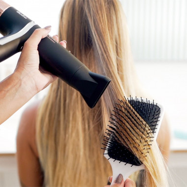 Cabello desenredado sin tirones, con brillo natural y un acabado uniforme. Además, fortalece la raíz gracias al masaje del cuero cabelludo.