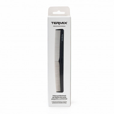Con partículas de titanio, este peina ofrece una resistencia excepcional a altas temperaturas y a productos químicos, asegurando durabilidad incluso en entornos exigentes. Su diseño específico permite cortes y peinados con total control y precisión, convirtiéndolo en una herramienta indispensable en cualquier kit profesional. Entre la gama de peines de titanio Termix, este modelo se ha consolidado como el clásico imprescindible.